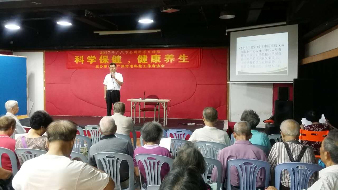 根据广州市科协[2017]70号文件的要求,协会于2017年9月12日上午在青年文化宫举行了主题为《科学保健,健康养生》的科普活动,共66人参加活动。本次科普讲座由副会长胡子坤教授级高工主持,有如下三个内容: